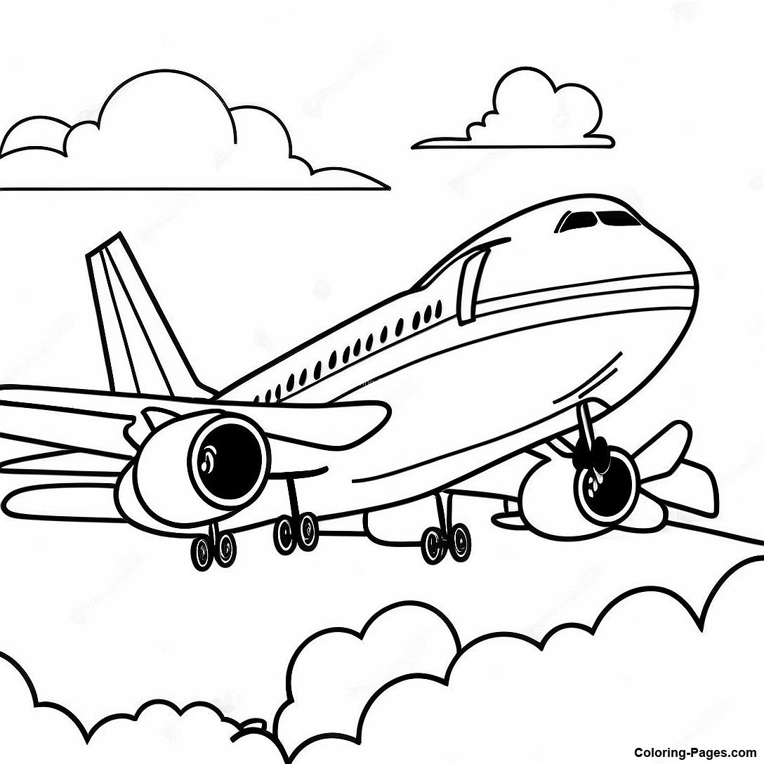 A380 Airplane with Clouds Coloring Page