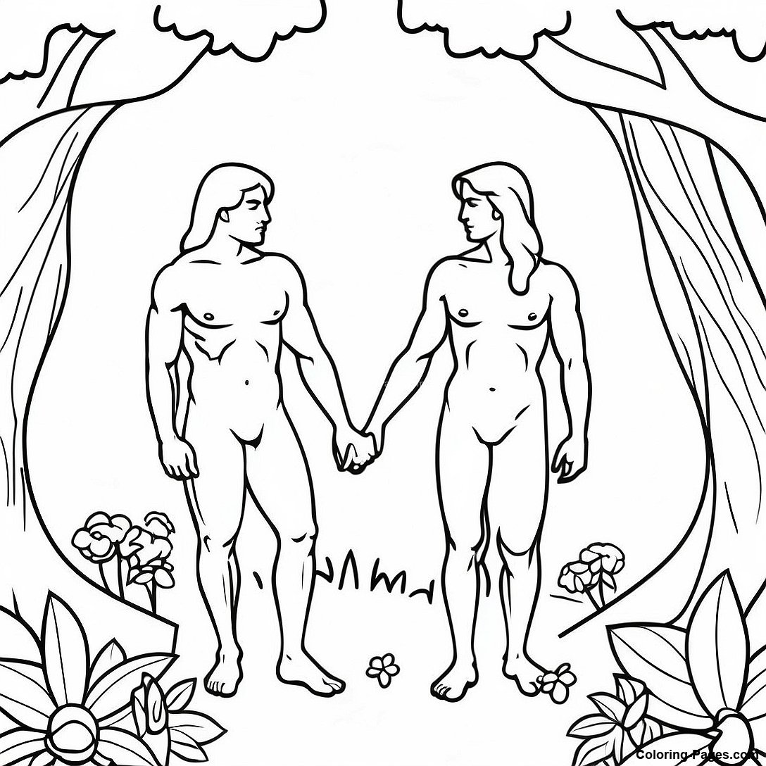 Download Printable PDF of Adam And Eve In The Garden Coloring Page