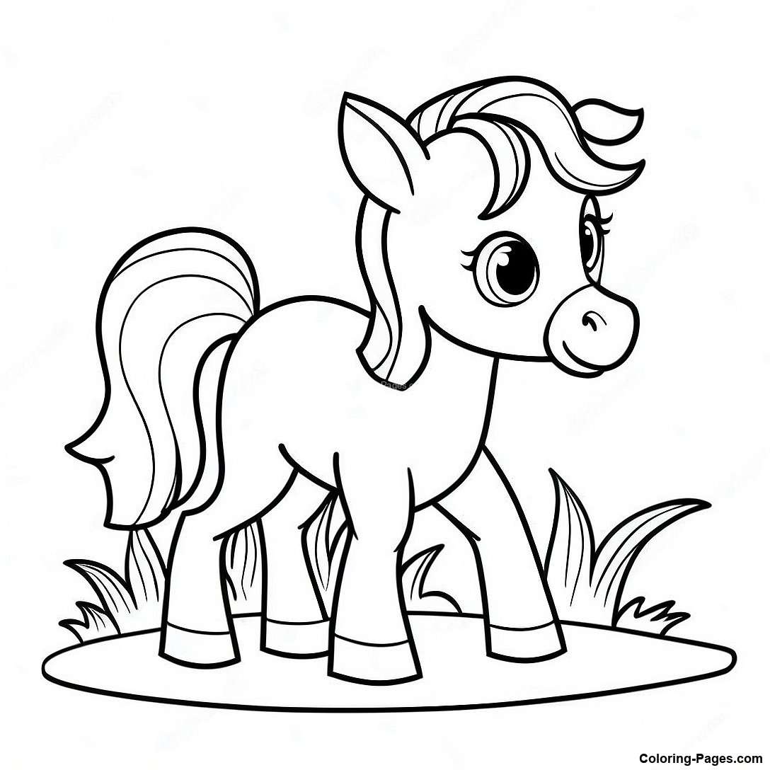 Adorable Baby Horse Playing Coloring Page