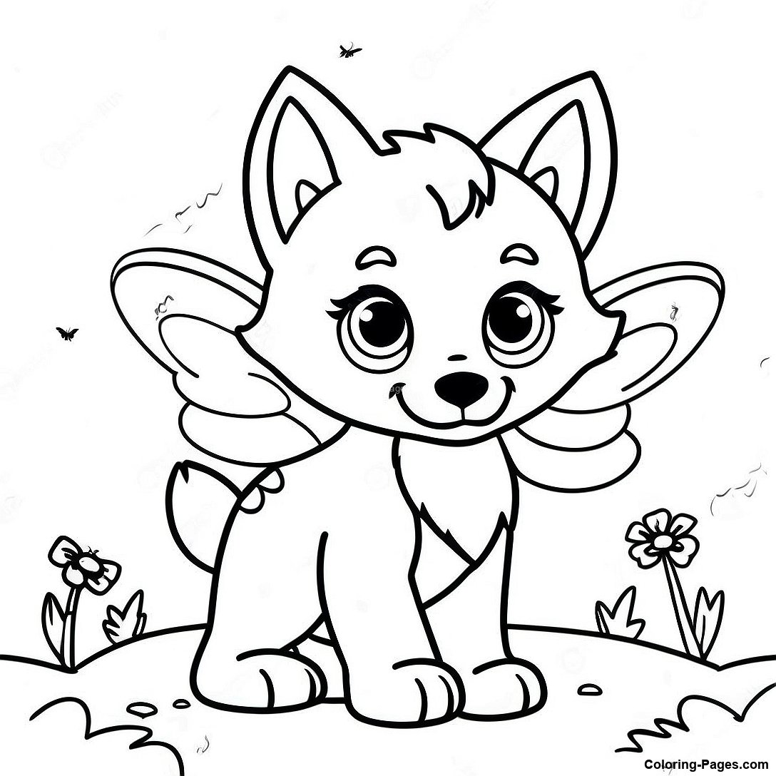 Adorable Baby Wolf With Butterfly Wings Coloring Page