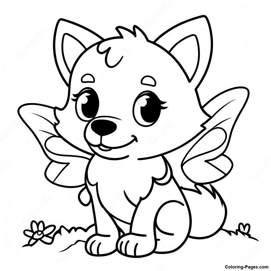 Download Printable PDF of Adorable Baby Wolf With Butterfly Wings Coloring Page