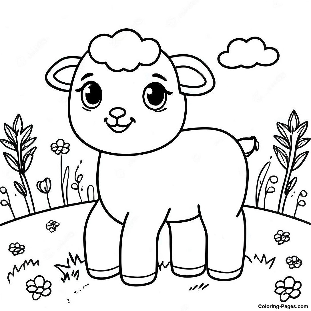 Download Printable PDF of Adorable Lamb In Meadow Coloring Page