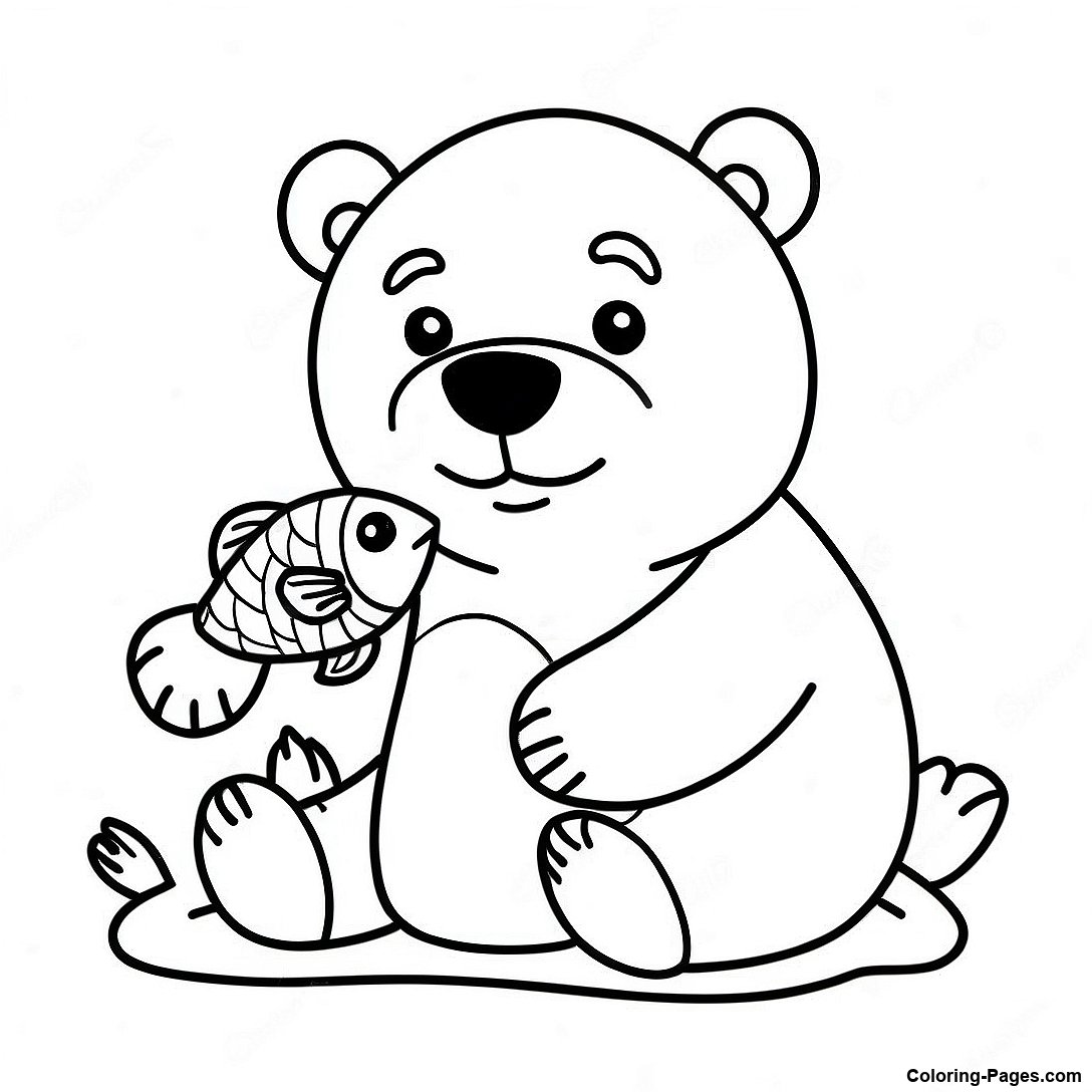 Download Printable PDF of Adorable Polar Bear Holding A Fish Coloring Page