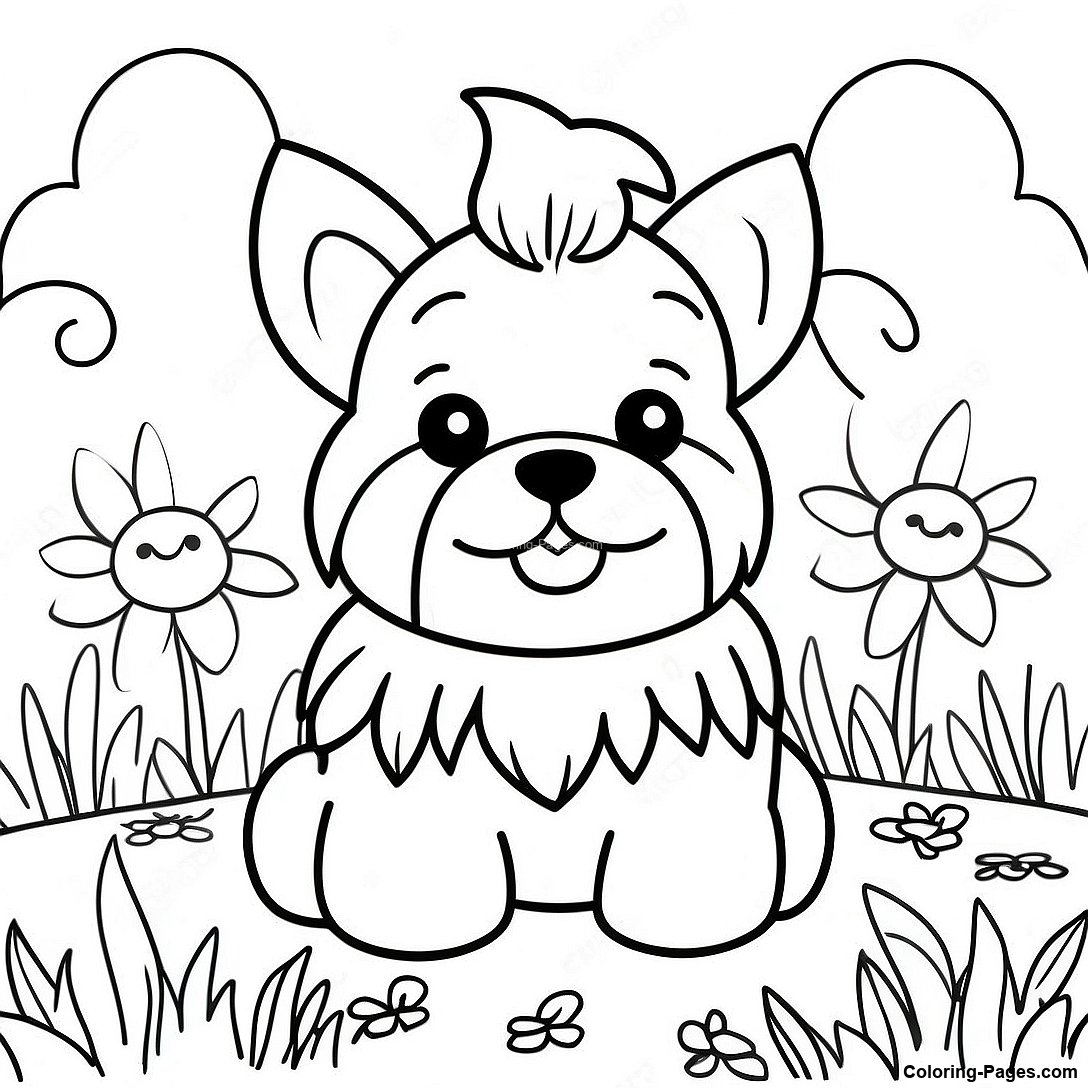 Download Printable PDF of Adorable Yorkie In A Flower Garden Coloring Page