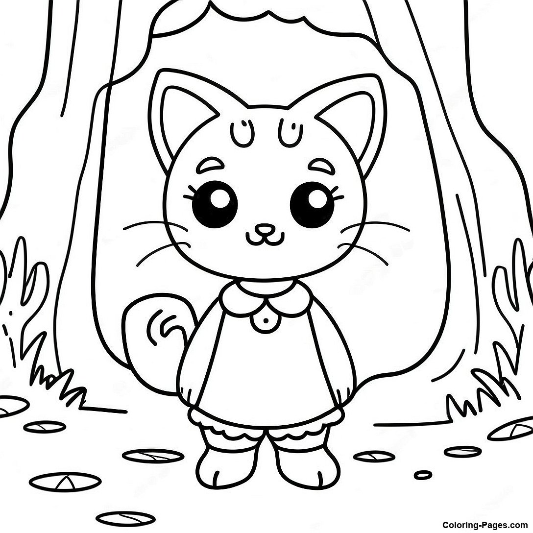 Adventurous Cat Girl In A Forest Coloring Page
