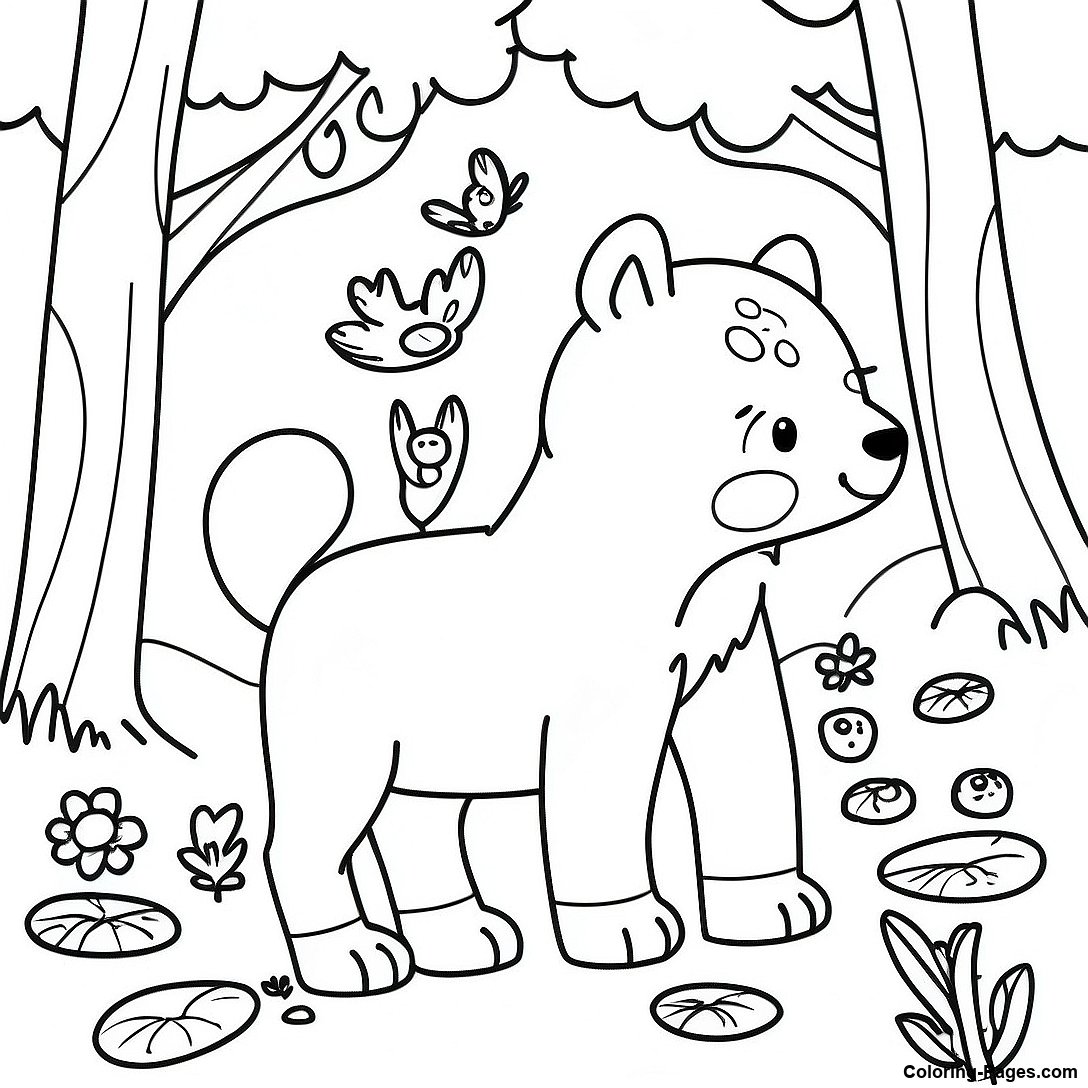 Playful Cougar in the Jungle Coloring Page