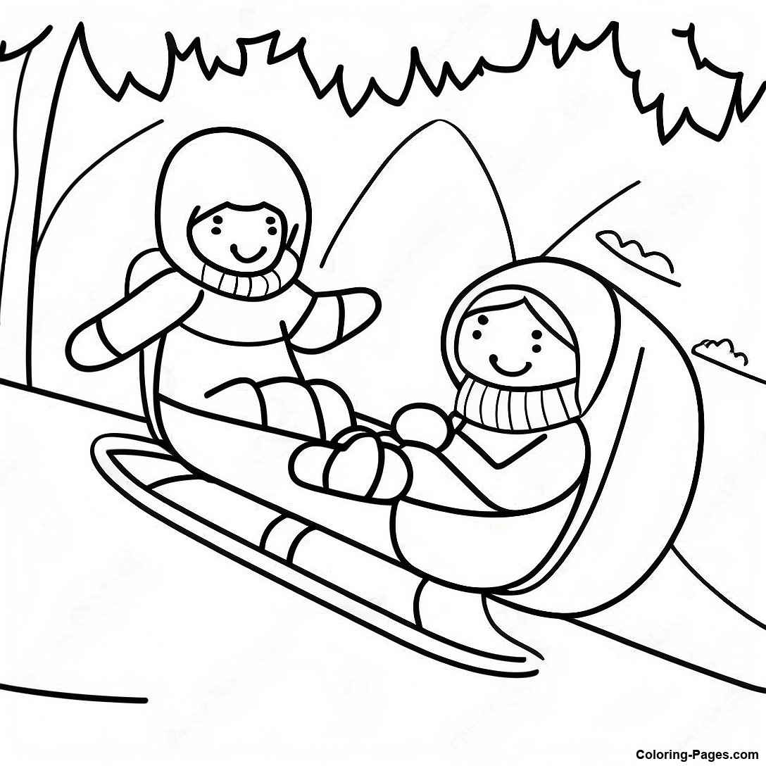 Download Printable PDF of Adventurous Sledding Scene Coloring Page