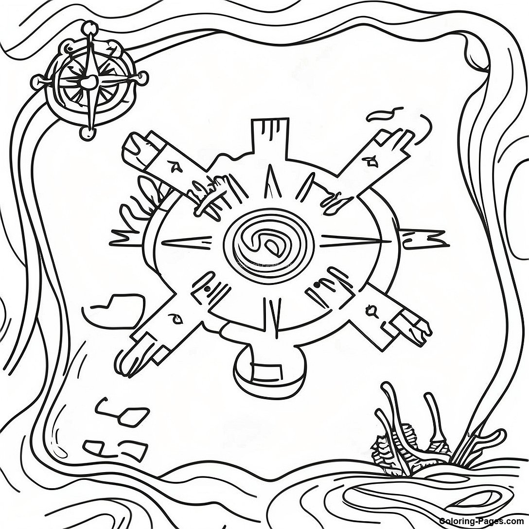 Download Printable PDF of Adventurous Treasure Map Coloring Page