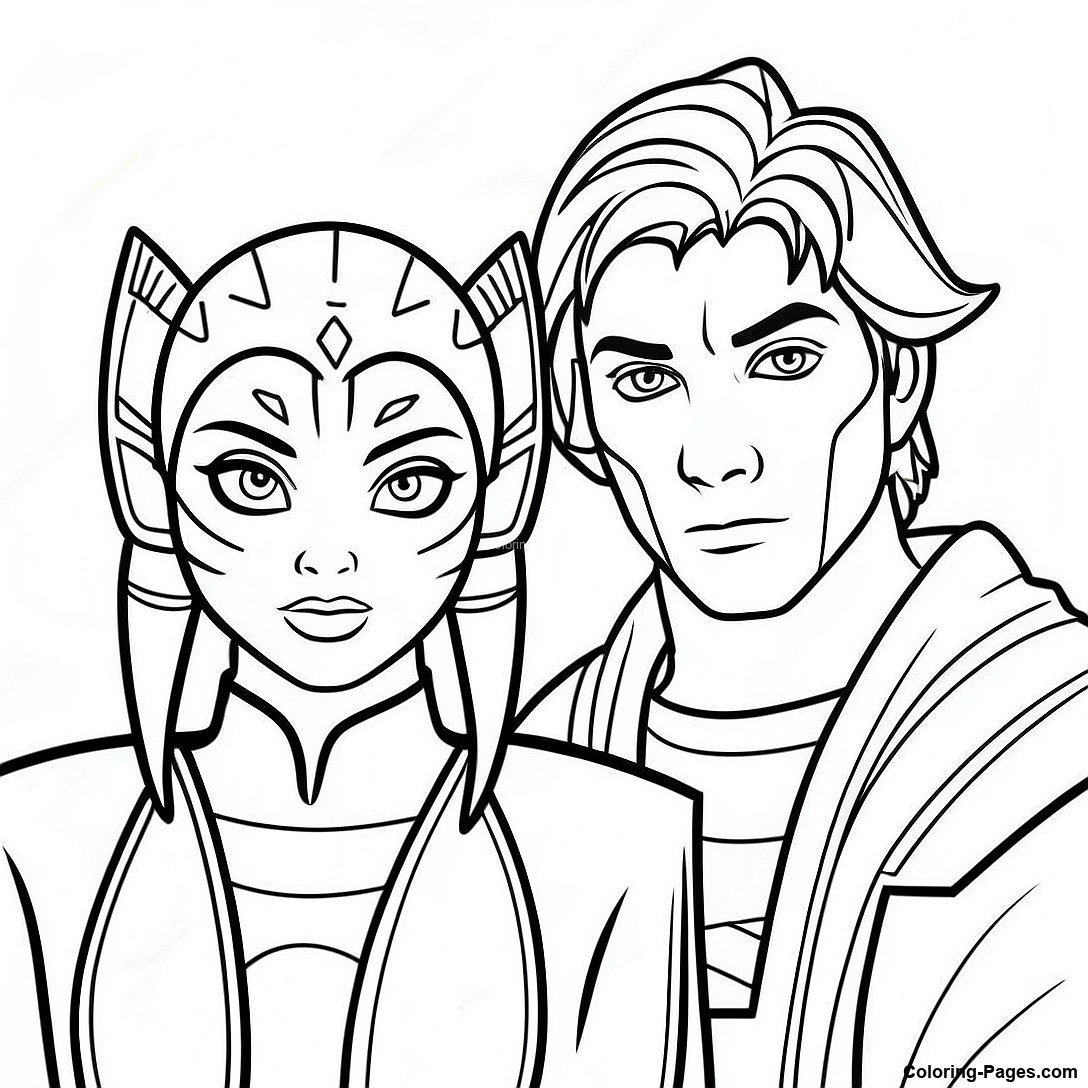 Ahsoka Tano And Anakin Skywalker Coloring Page