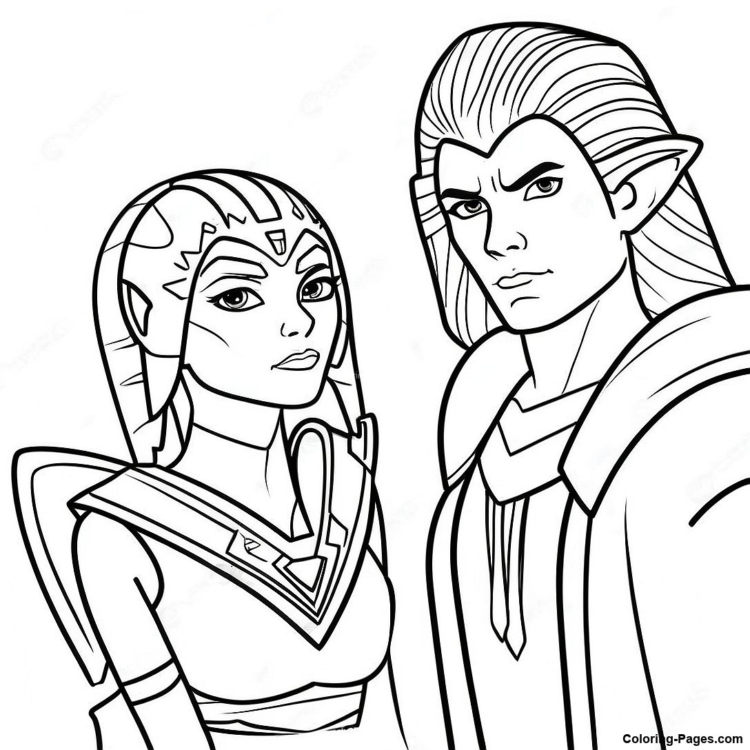Ahsoka Tano And Anakin Skywalker Coloring Page