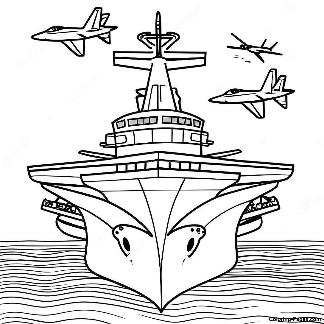 Aircraft Carrier With Jets Coloring Page