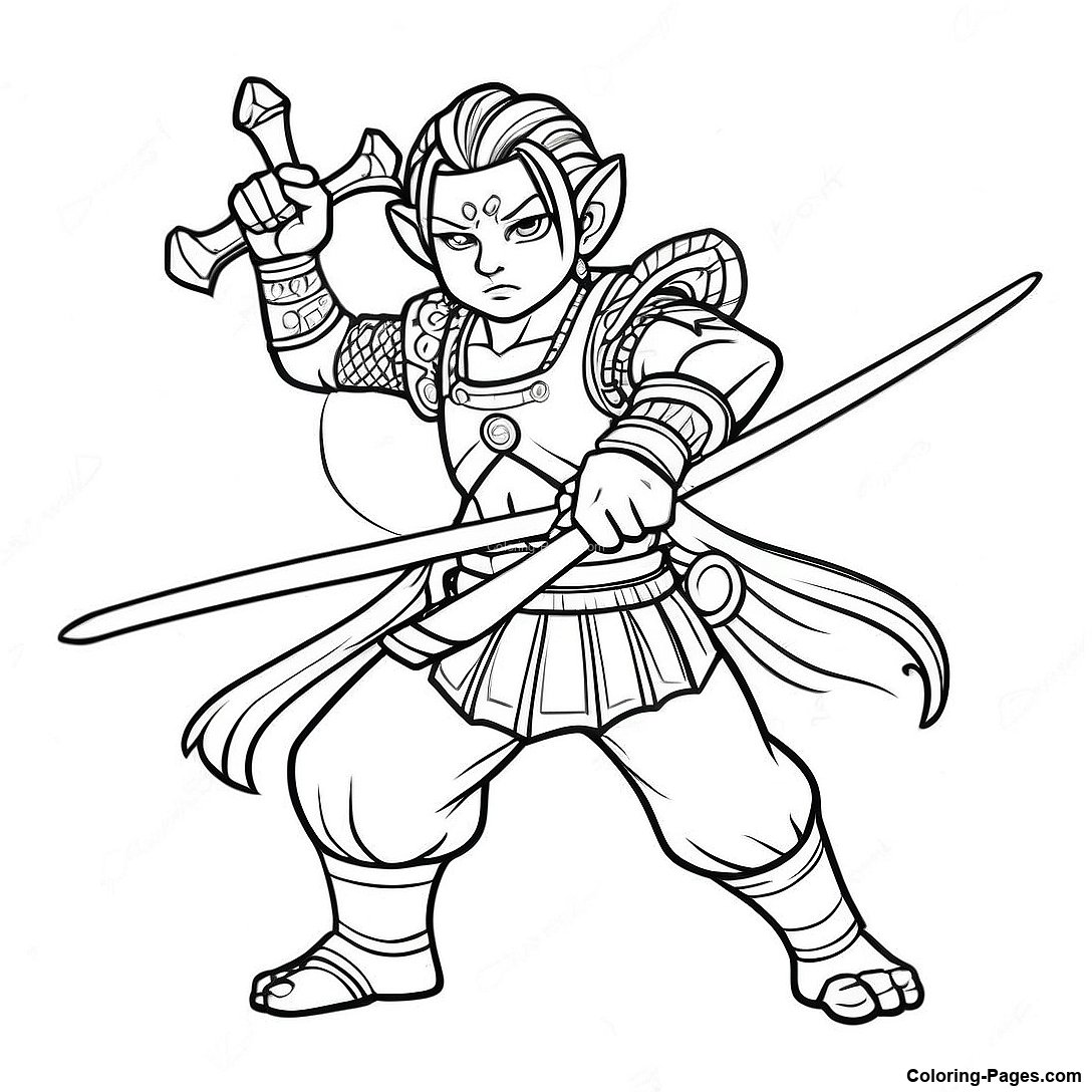 Download Printable PDF of Akedo Character With Weapons Coloring Page