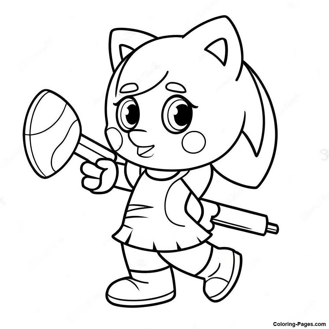 Amy Rose With Her Piko Piko Hammer Coloring Page