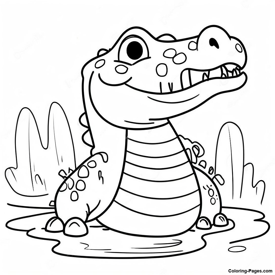 Download Printable PDF of Angry Crocodile In Water Coloring Page