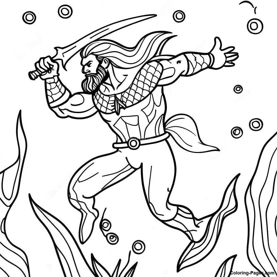 Download Printable PDF of Aquaman Underwater Coloring Page