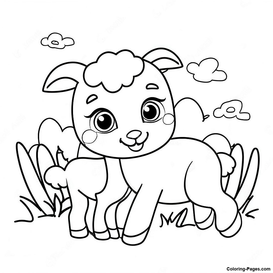 Download Printable PDF of Baby Lamb And Mother Coloring Page