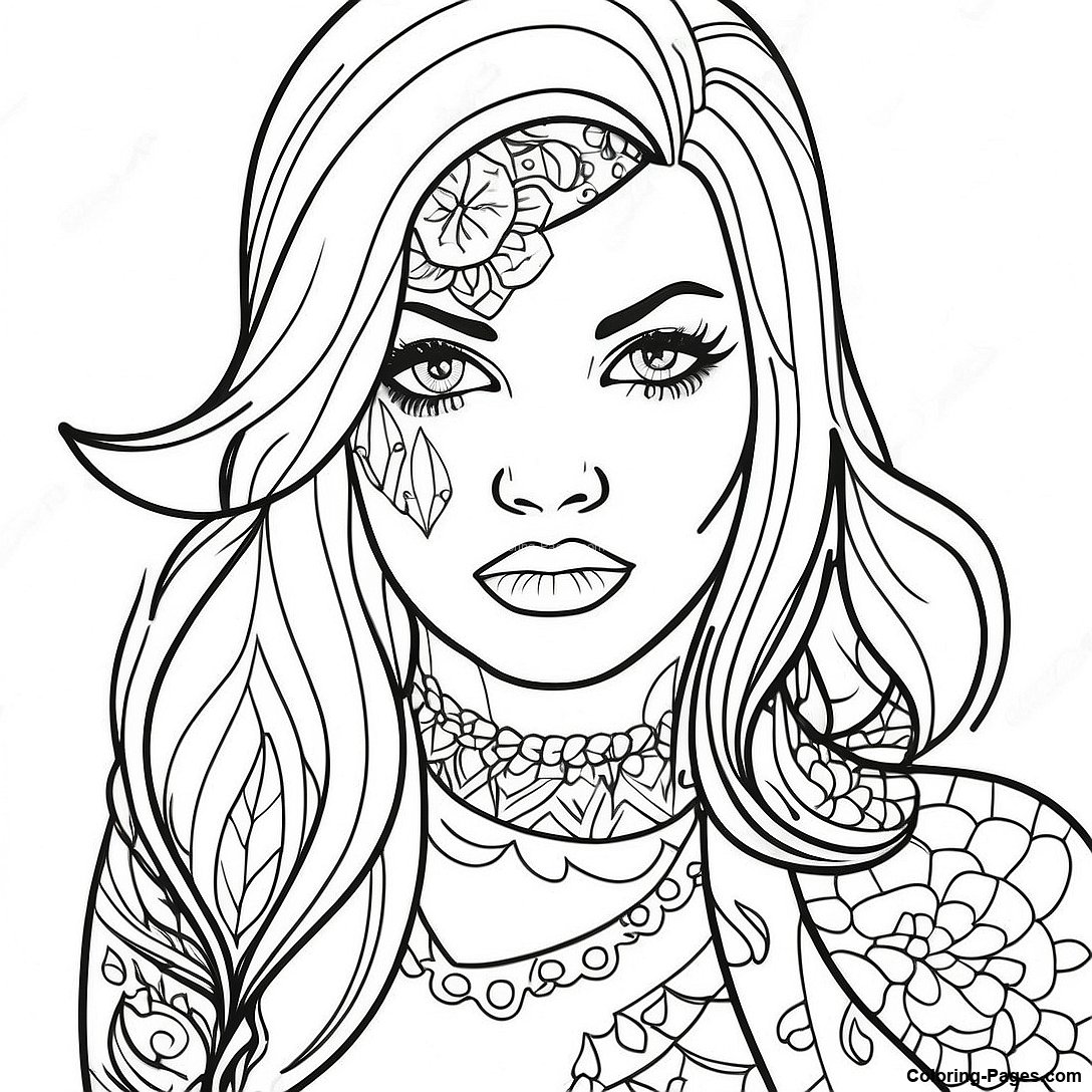 Download Printable PDF of Bad Girl Female Tattoo Coloring Page