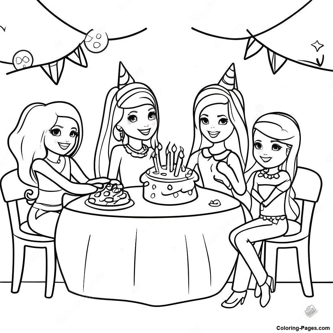 Download Printable PDF of Barbie And Friends Birthday Party Coloring Page