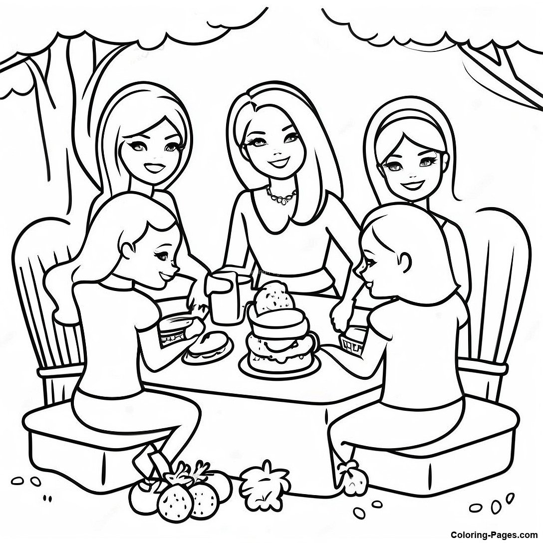 Barbie And Friends In A Fun Picnic Coloring Page