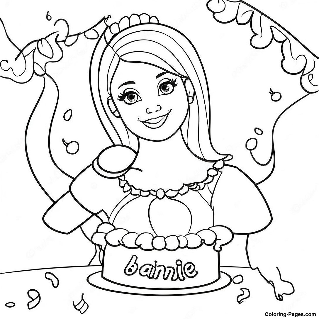 Download Printable PDF of Barbie Birthday Celebration Coloring Page