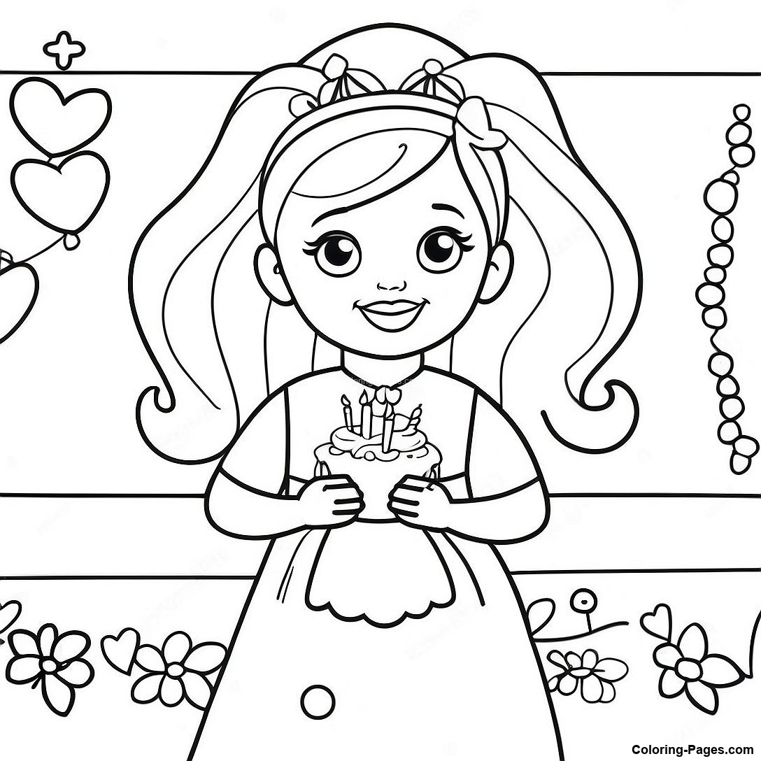 Barbie Birthday Celebration Coloring Page