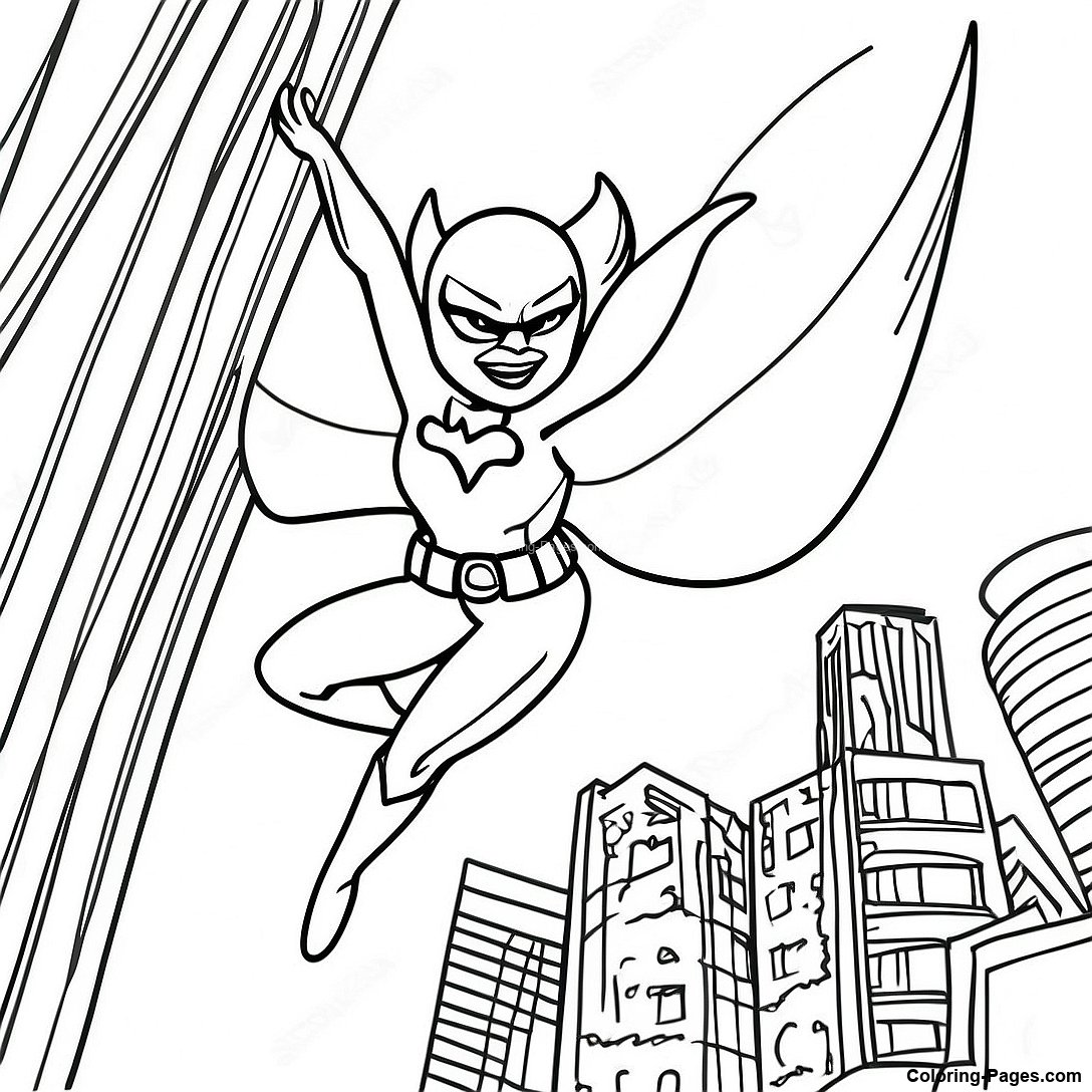 Batgirl Flying Through The City Coloring Page