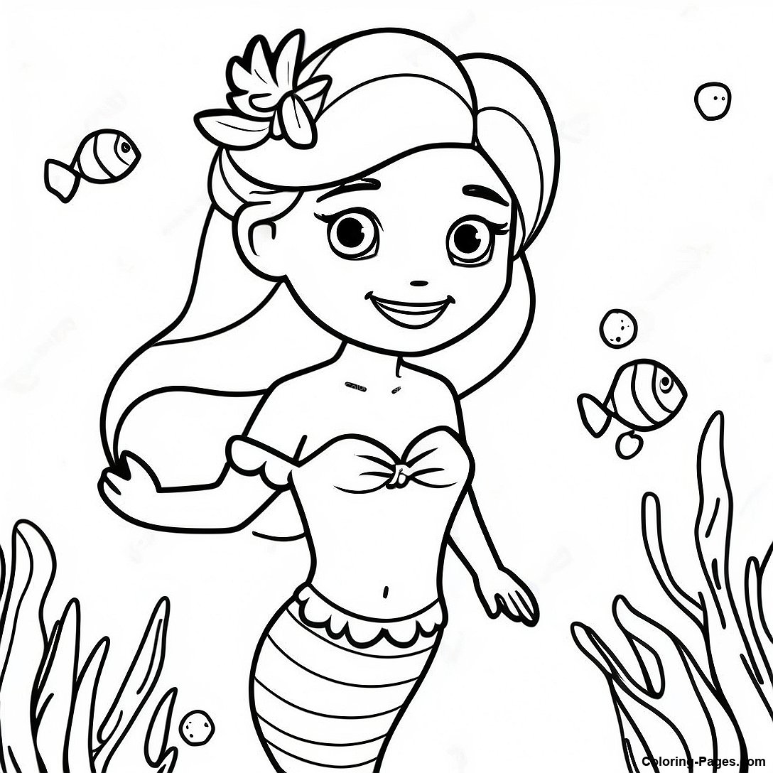 Beautiful Elsa Mermaid In Coral Reef Coloring Page