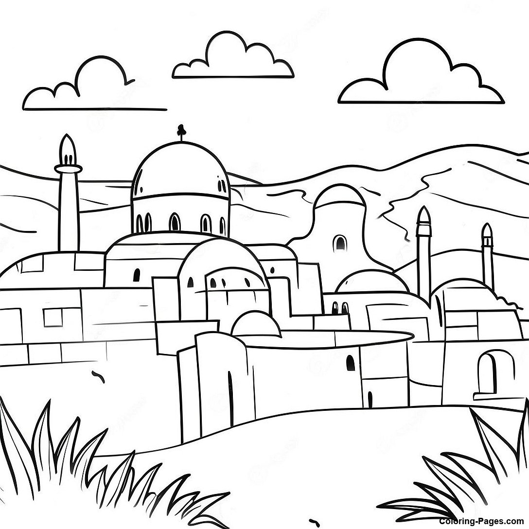 Download Printable PDF of Beautiful Palestinian Landscape Coloring Page
