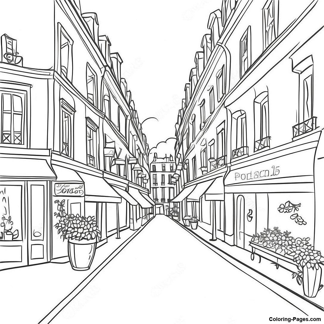 Download Printable PDF of Beautiful Parisian Streets Coloring Page