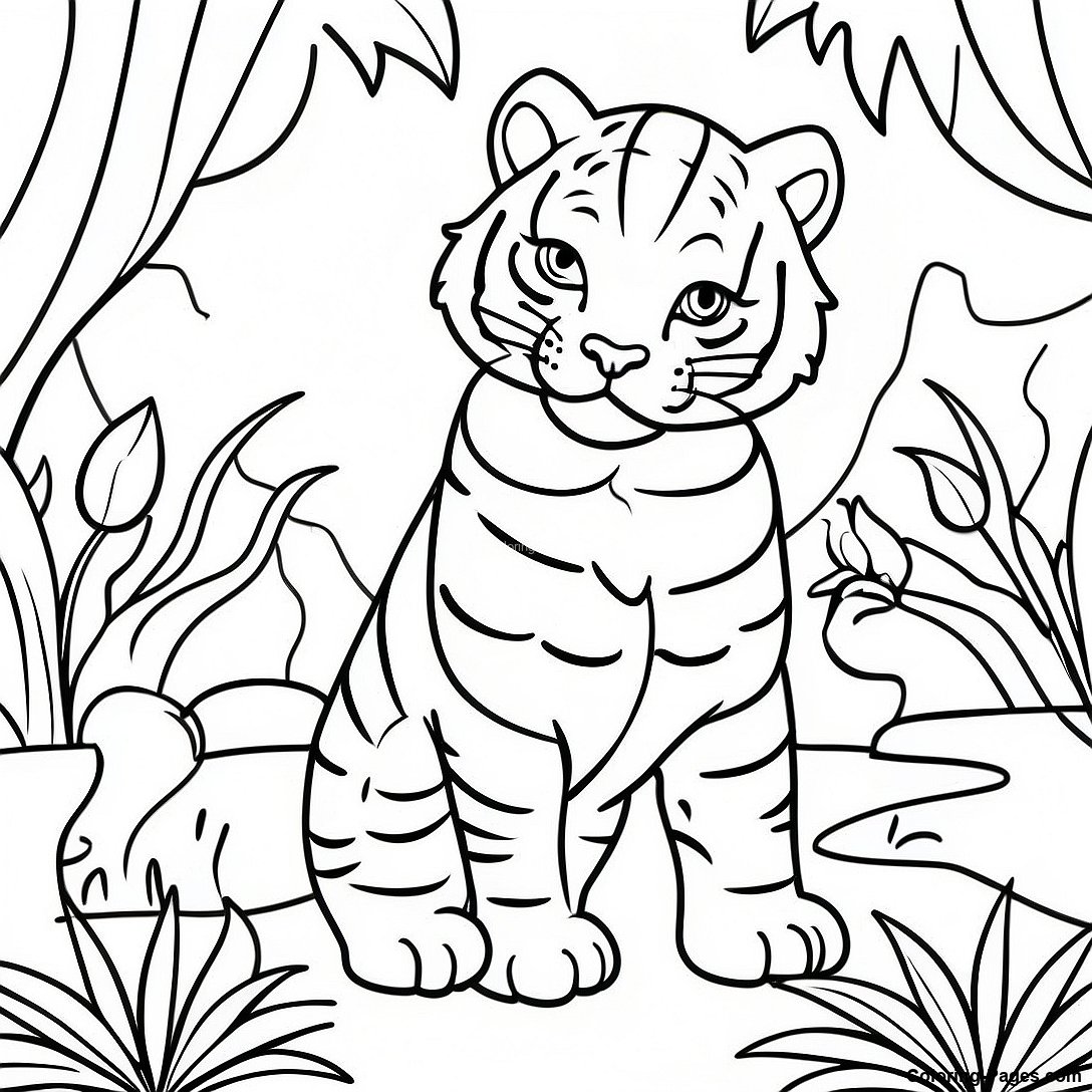 Bengals In A Jungle Scene Coloring Page