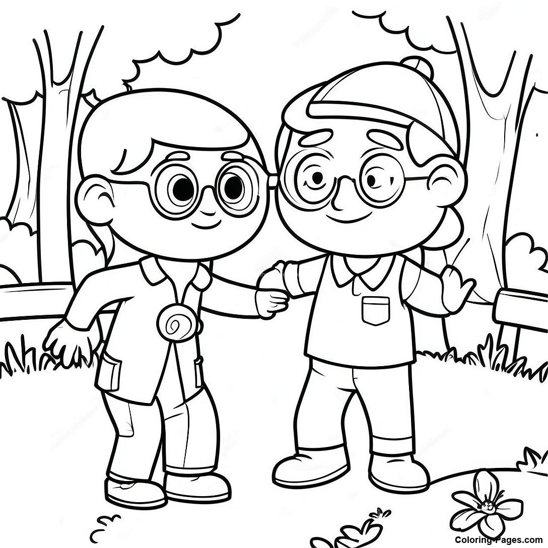 Download Printable PDF of Blippi And Meekah Playing In The Park Coloring Page