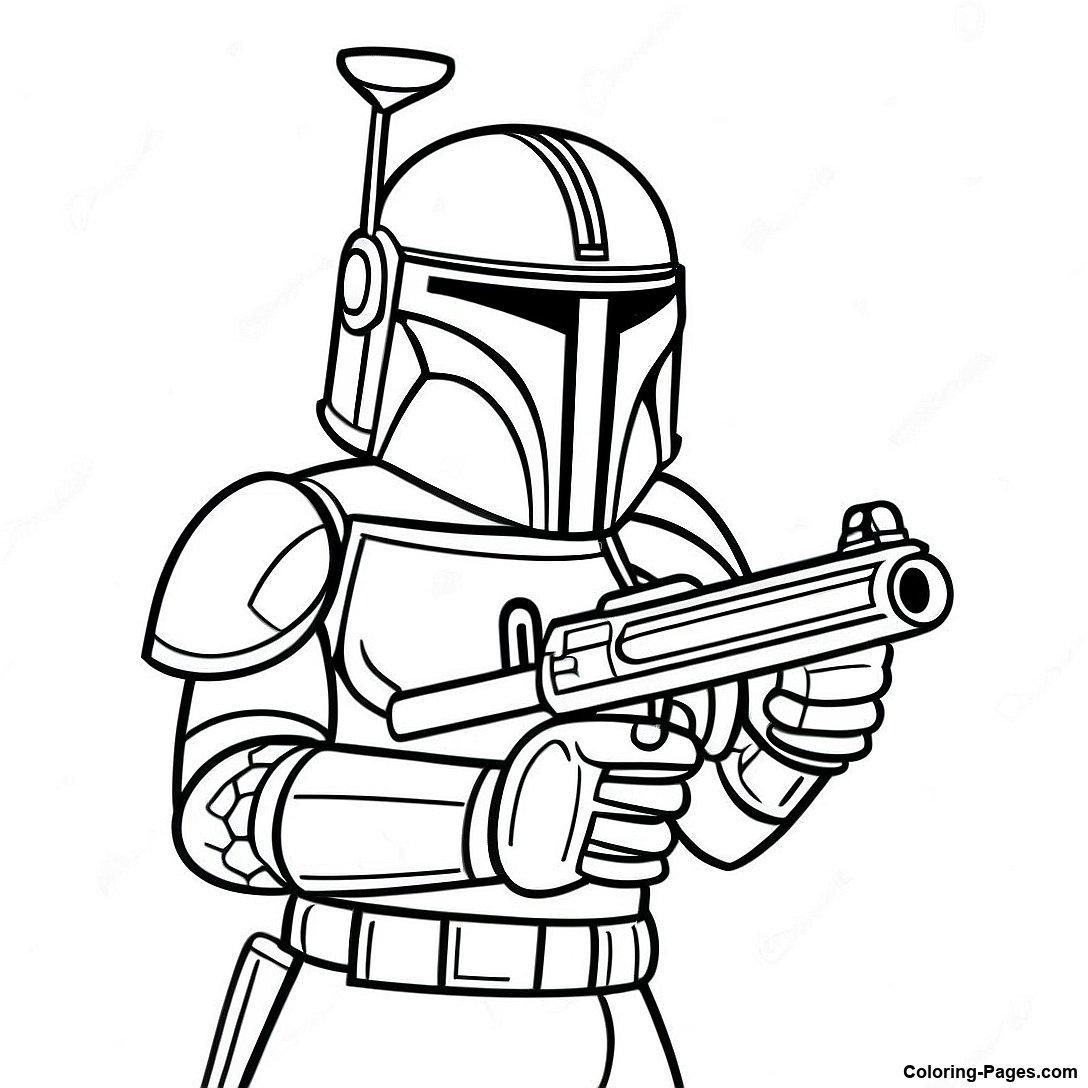 Download Printable PDF of Boba Fett With Blaster Coloring Page