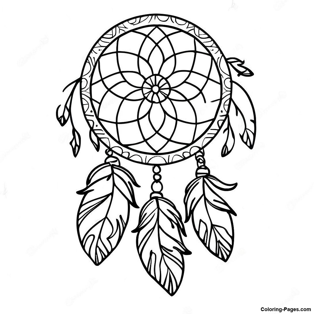 Download Printable PDF of Boho Dreamcatcher Coloring Page