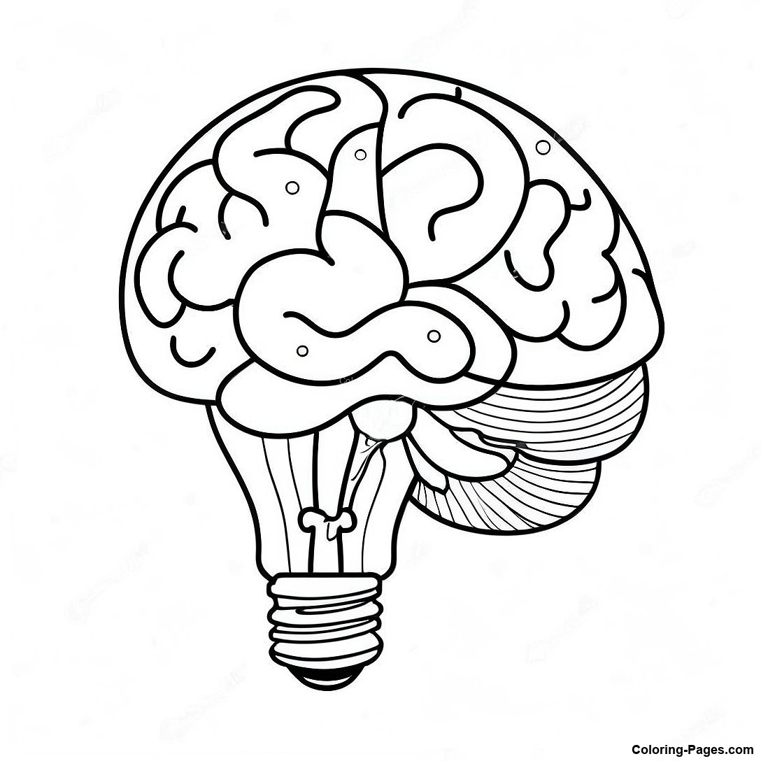 Download Printable PDF of Brain With Light Bulb Idea Coloring Page