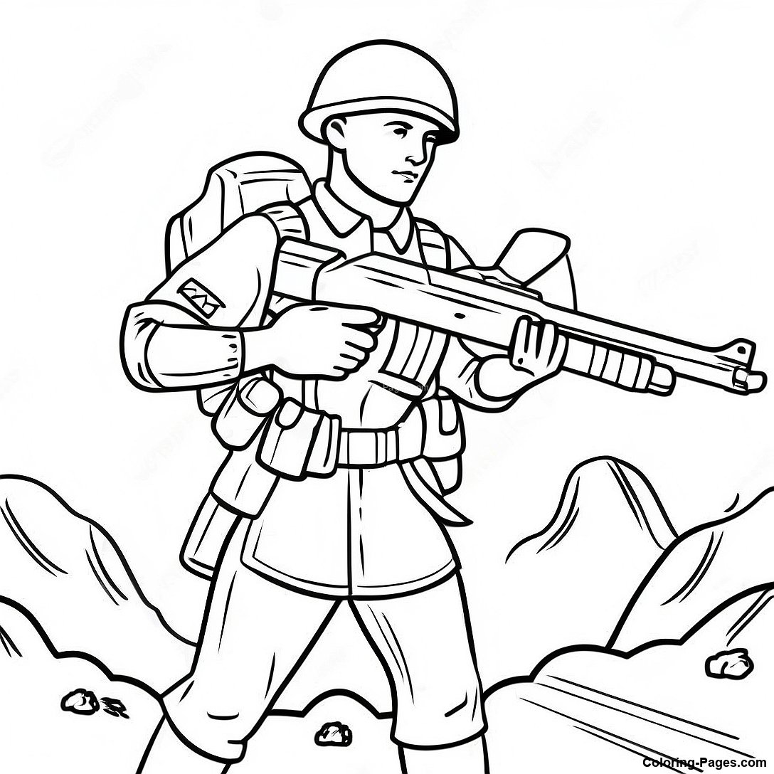Download Printable PDF of Brave Soldier In Combat Coloring Page