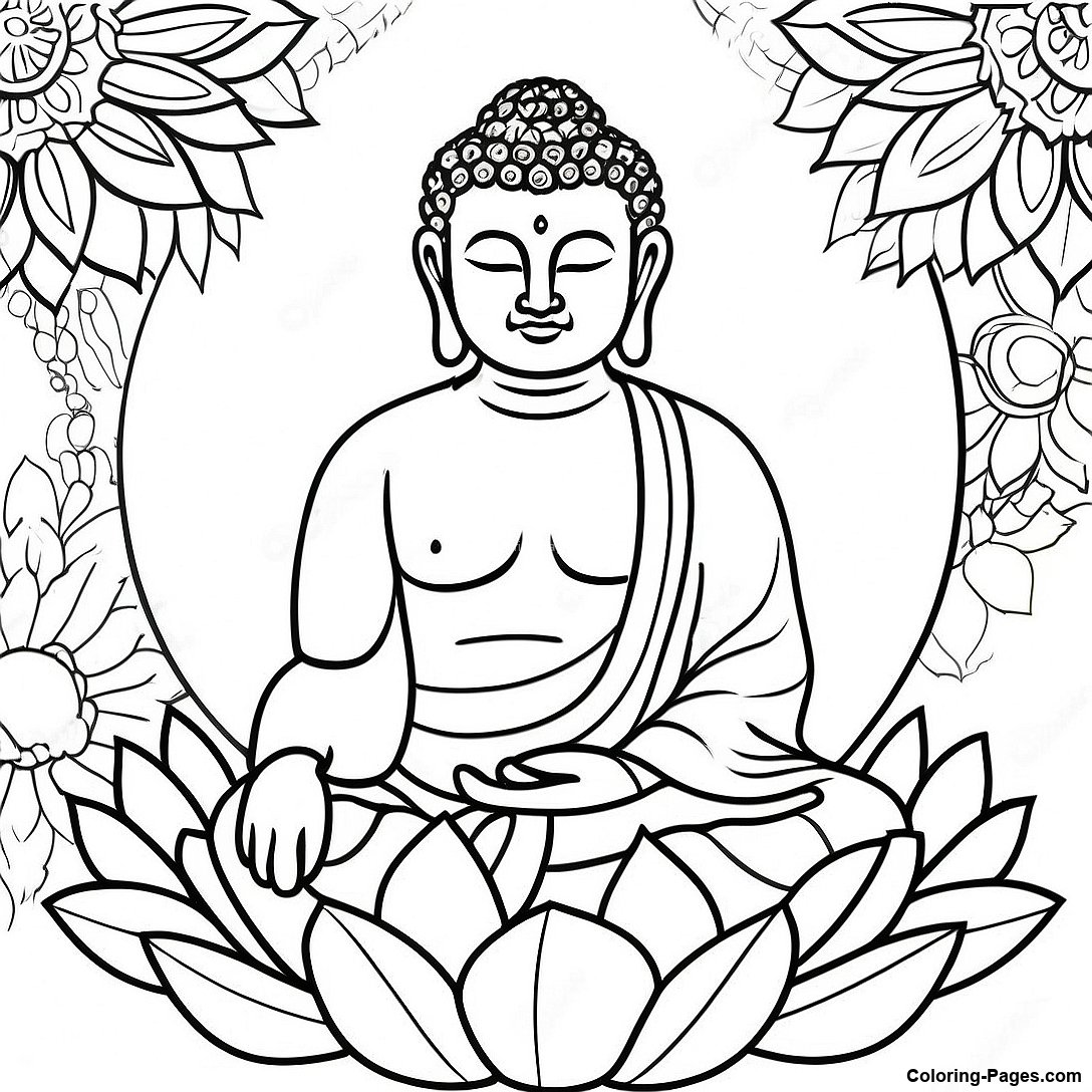 Buddha Surrounded By Lotus Flowers Coloring Page