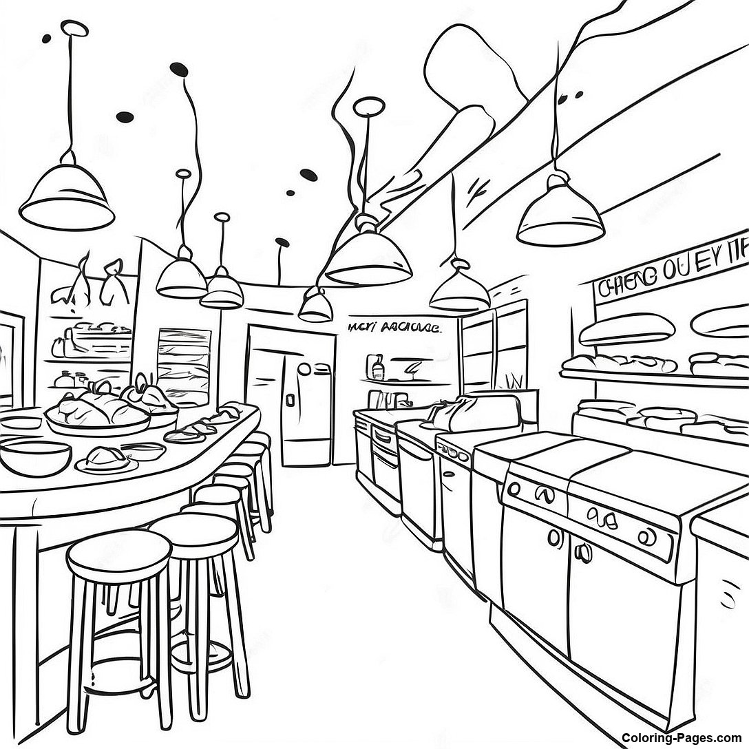 Download Printable PDF of Busy Restaurant Kitchen Coloring Page