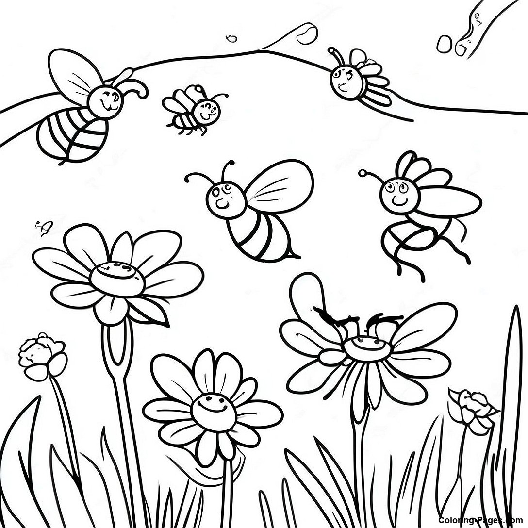 Download Printable PDF of Buzzing Bees In A Field Coloring Page