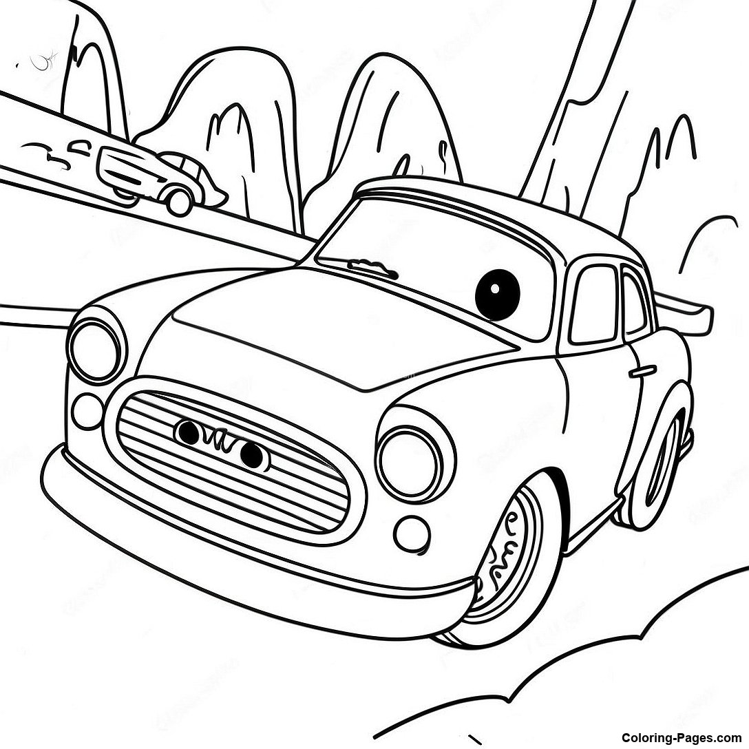 Download Printable PDF of Cars 2 Adventure Scene Coloring Page