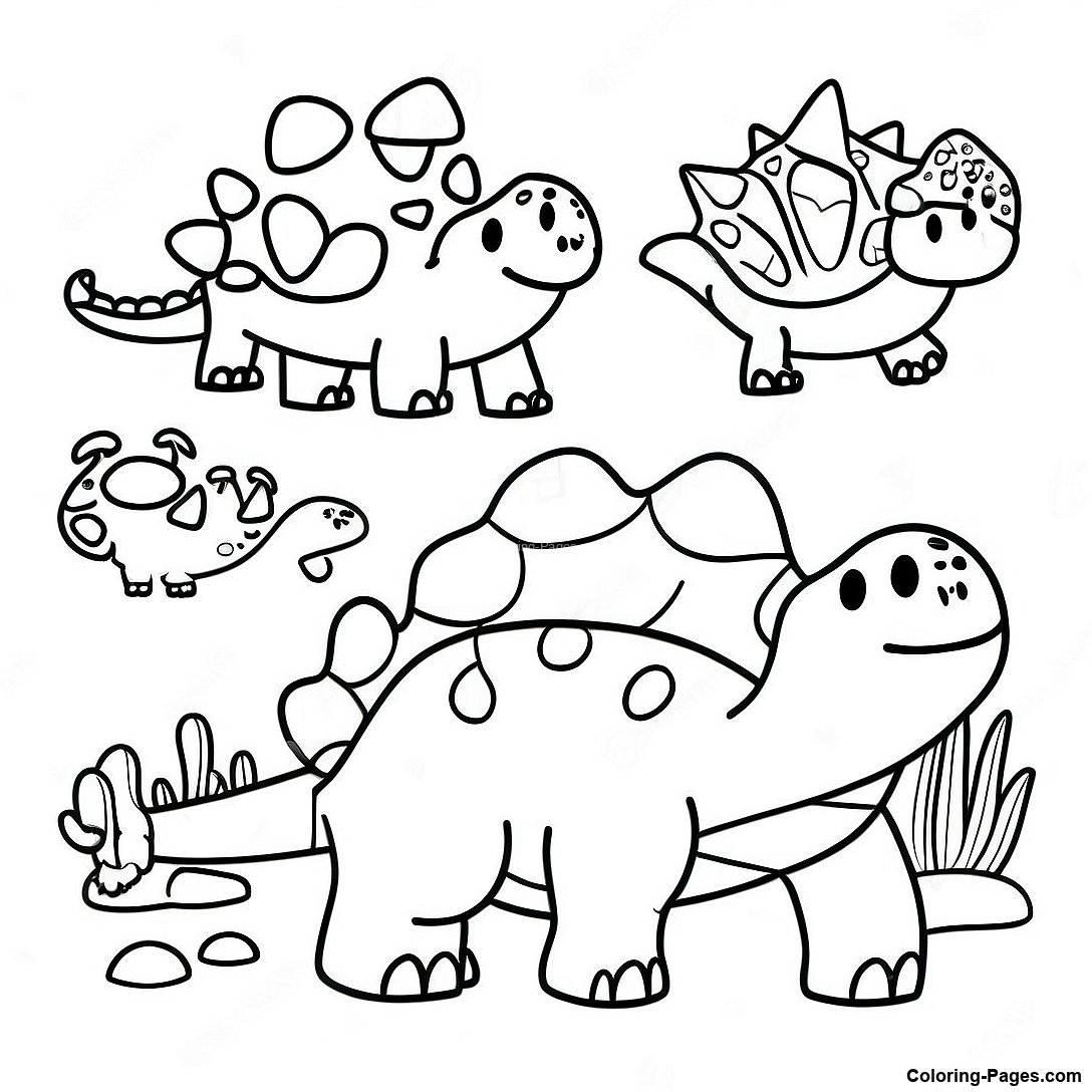 Download Printable PDF of Cartoon Ankylosaurus With Friends Coloring Page