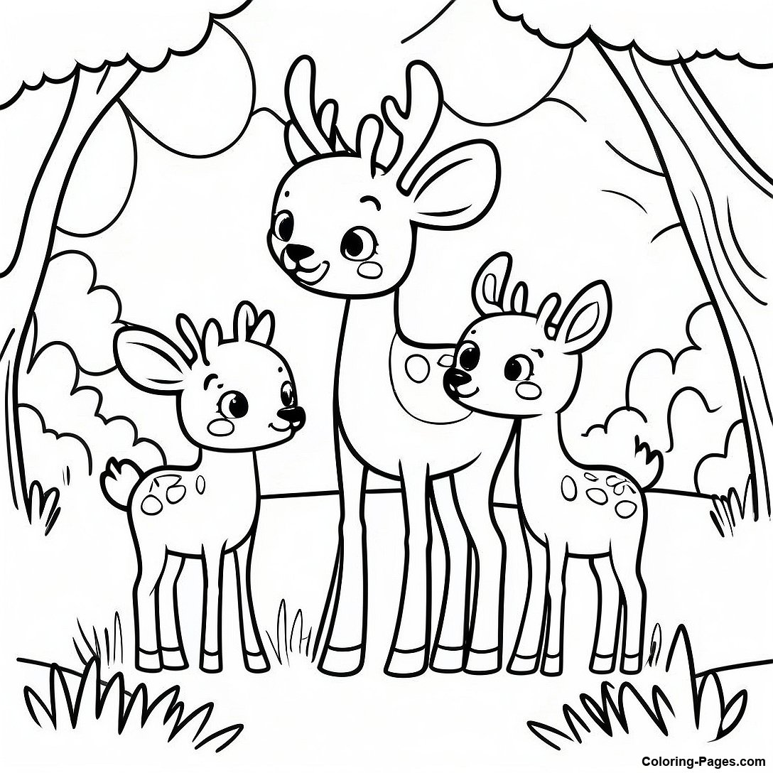 Download Printable PDF of Cartoon Deer Family In The Meadow Coloring Page