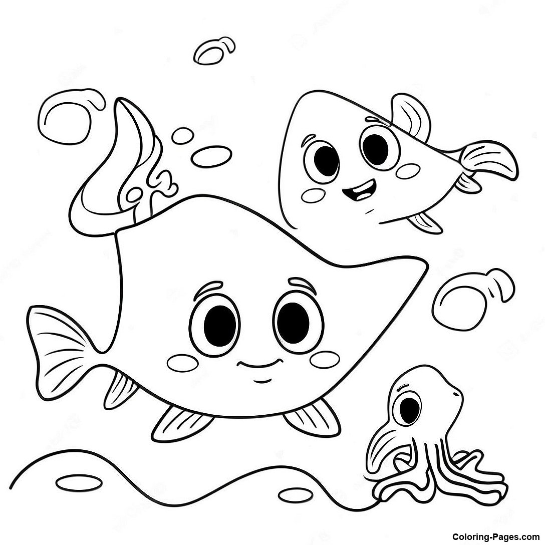 Download Printable PDF of Cartoon Stingray With Friends Coloring Page