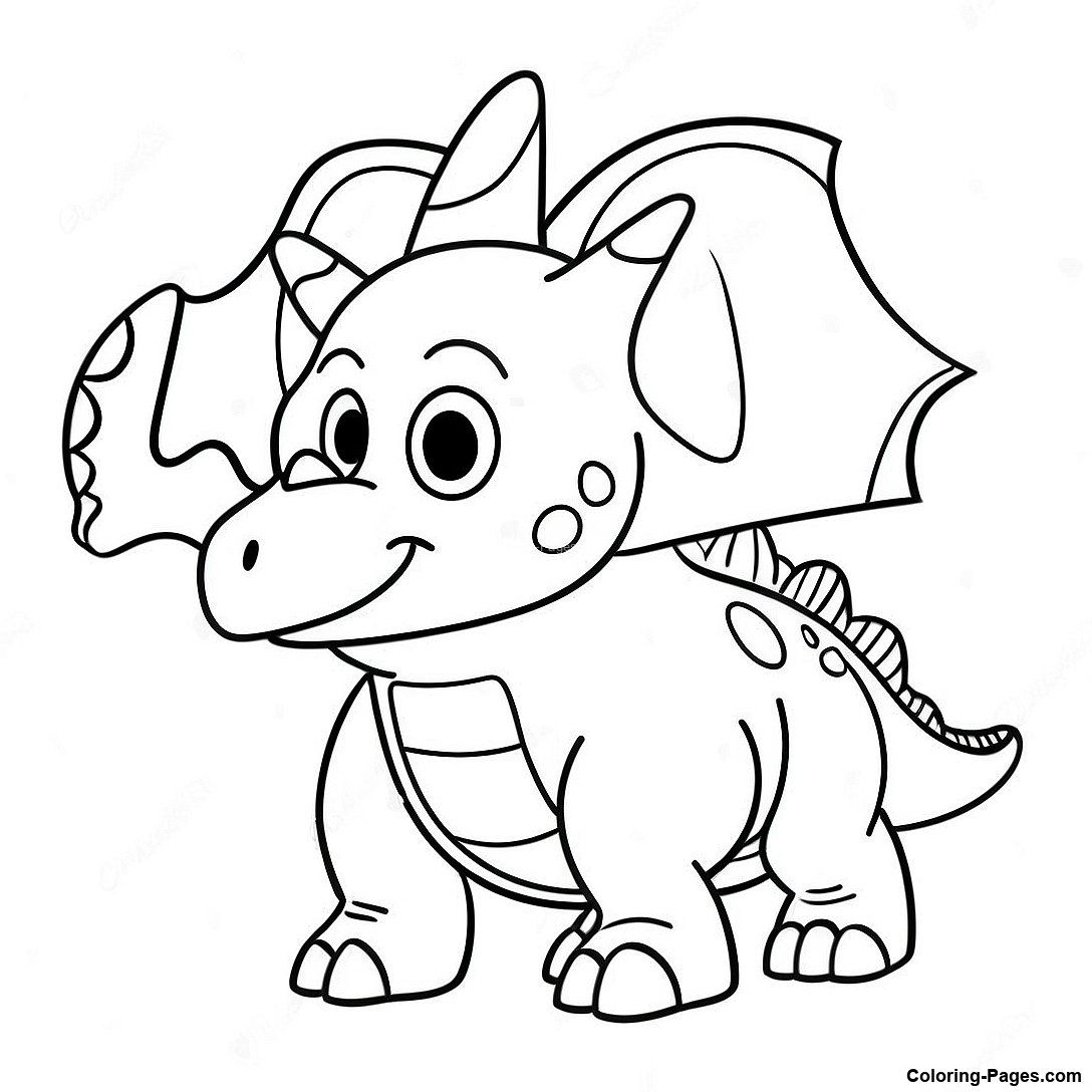 Cartoon Triceratops Playing Coloring Page