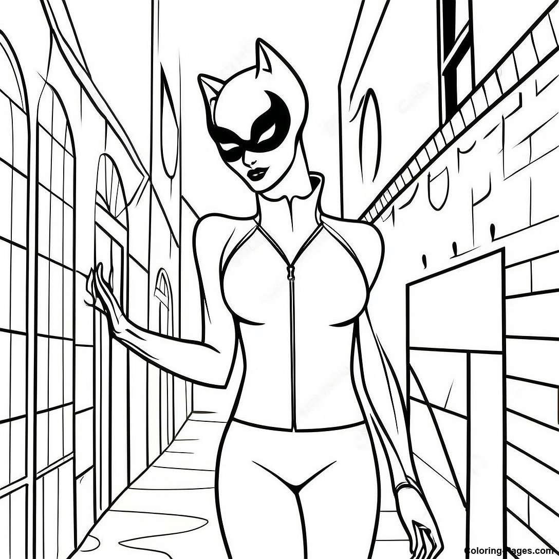 Download Printable PDF of Catwoman In A Dark Alley Coloring Page