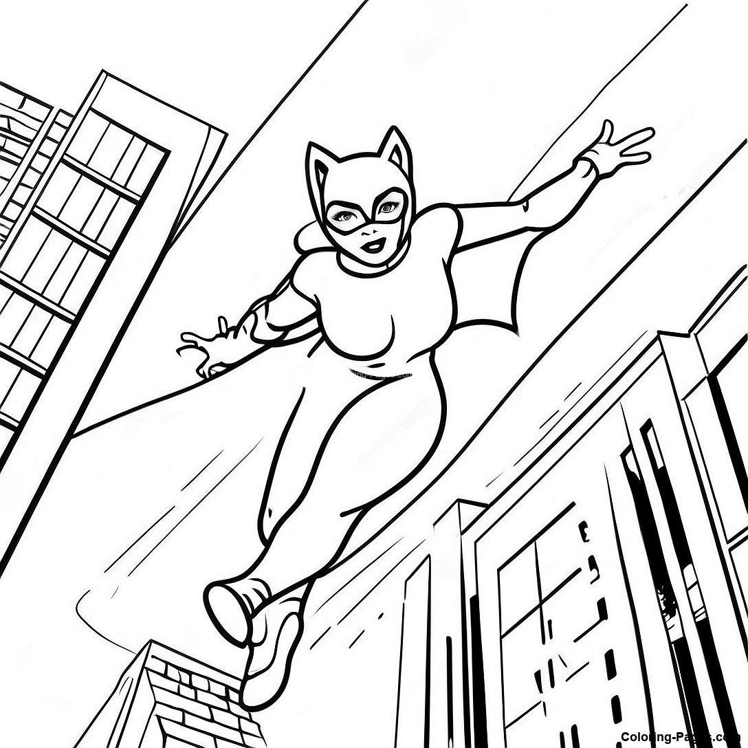 Download Printable PDF of Catwoman Jumping From A Building Coloring Page