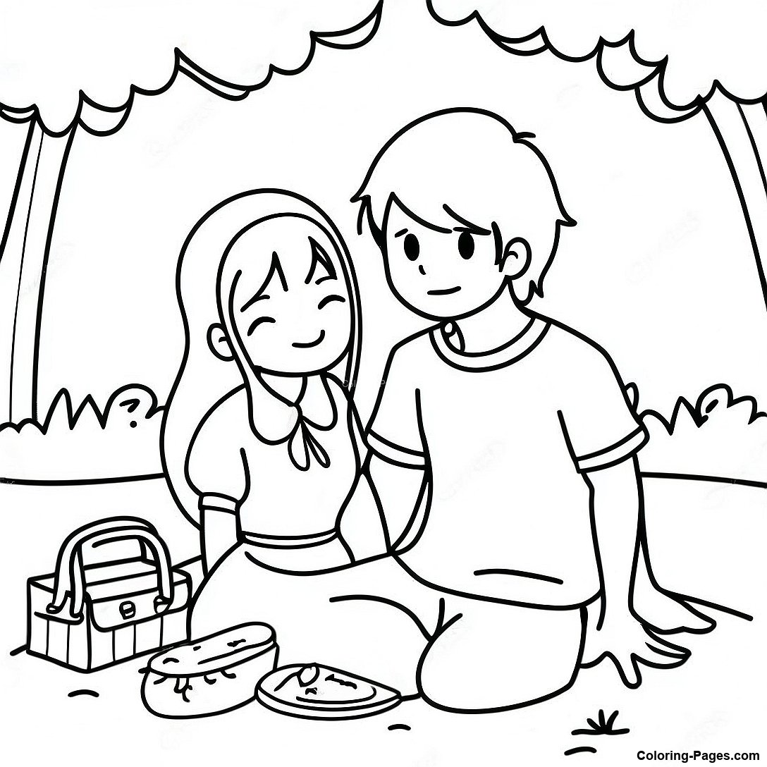 Charming Anime Couple On A Picnic Coloring Page