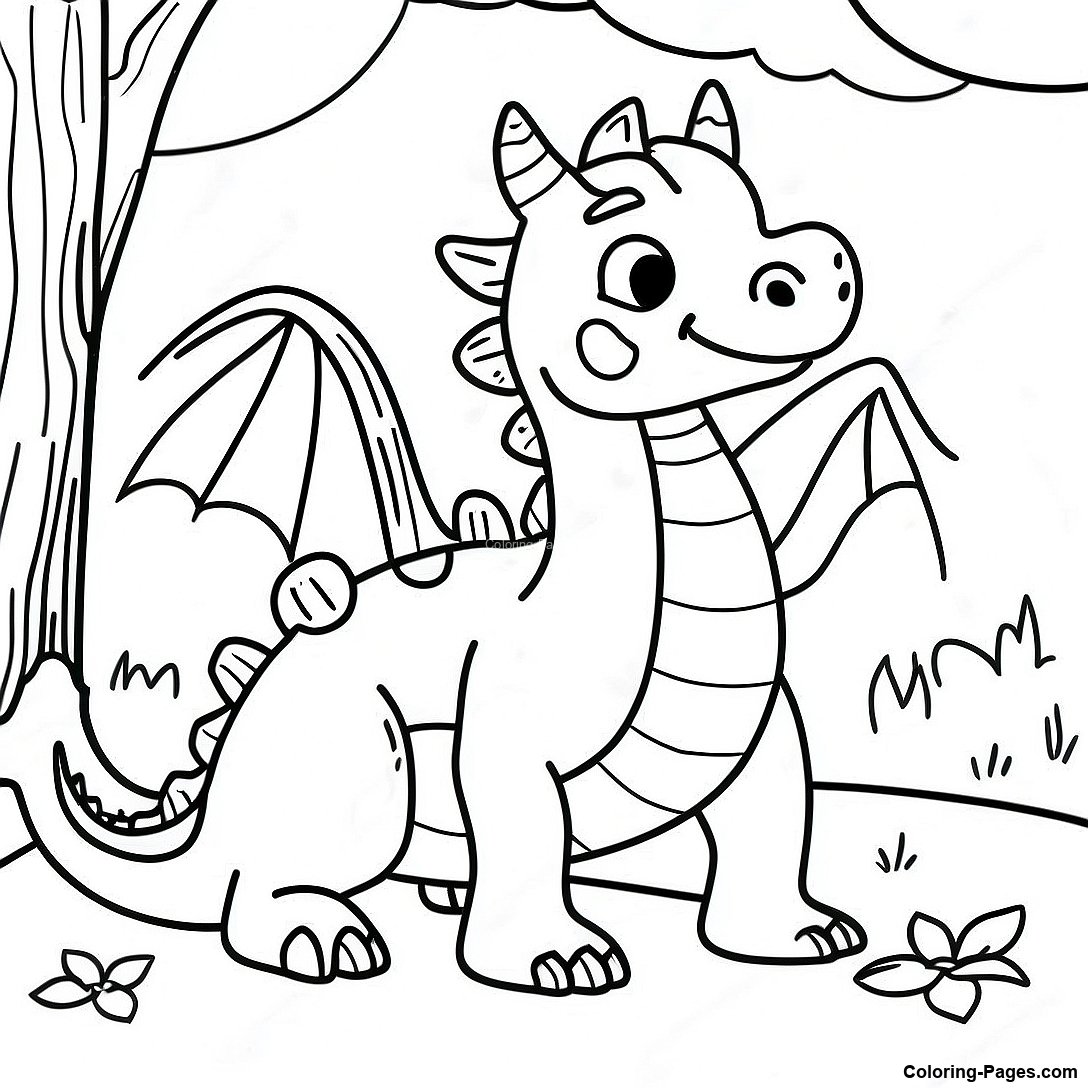 Download Printable PDF of Charming Dragon In A Forest Coloring Page
