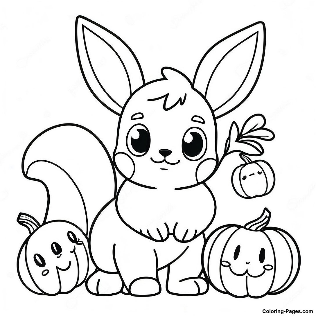 Download Printable PDF of Charming Eevee With Pumpkins Coloring Page