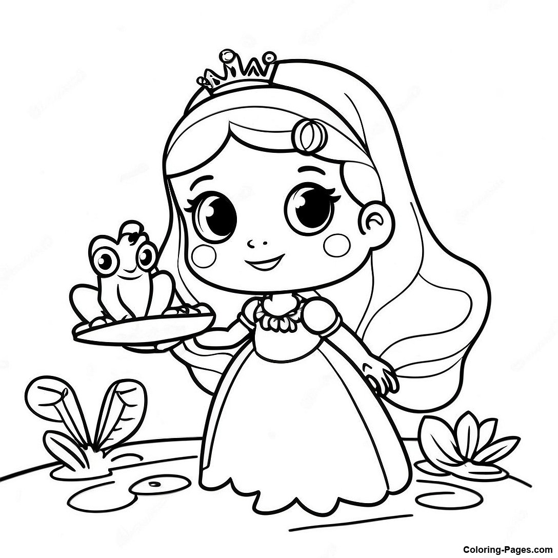 Download Printable PDF of Charming Princess Holding A Frog Coloring Page