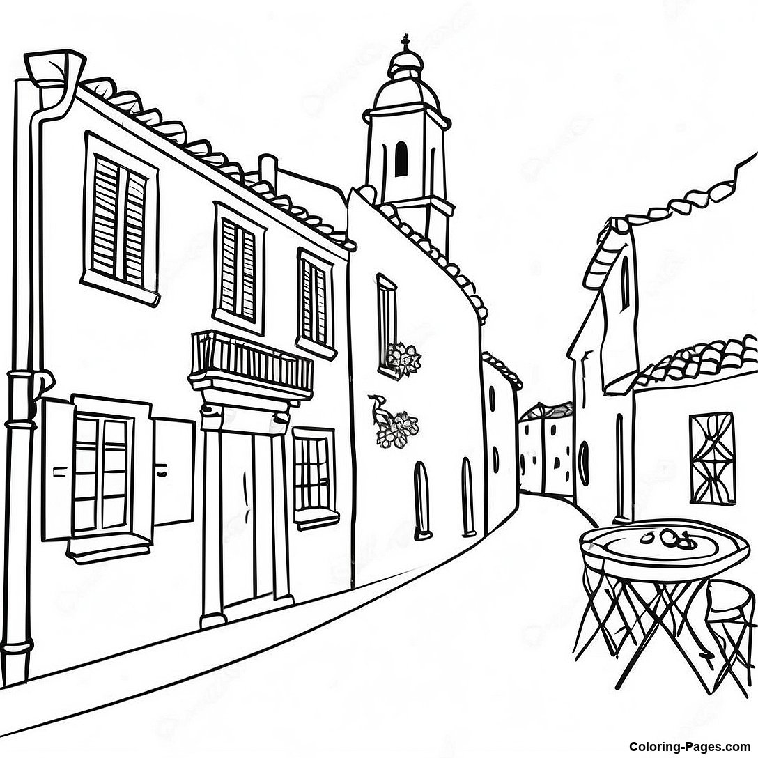 Download Printable PDF of Charming Spanish Village Coloring Page
